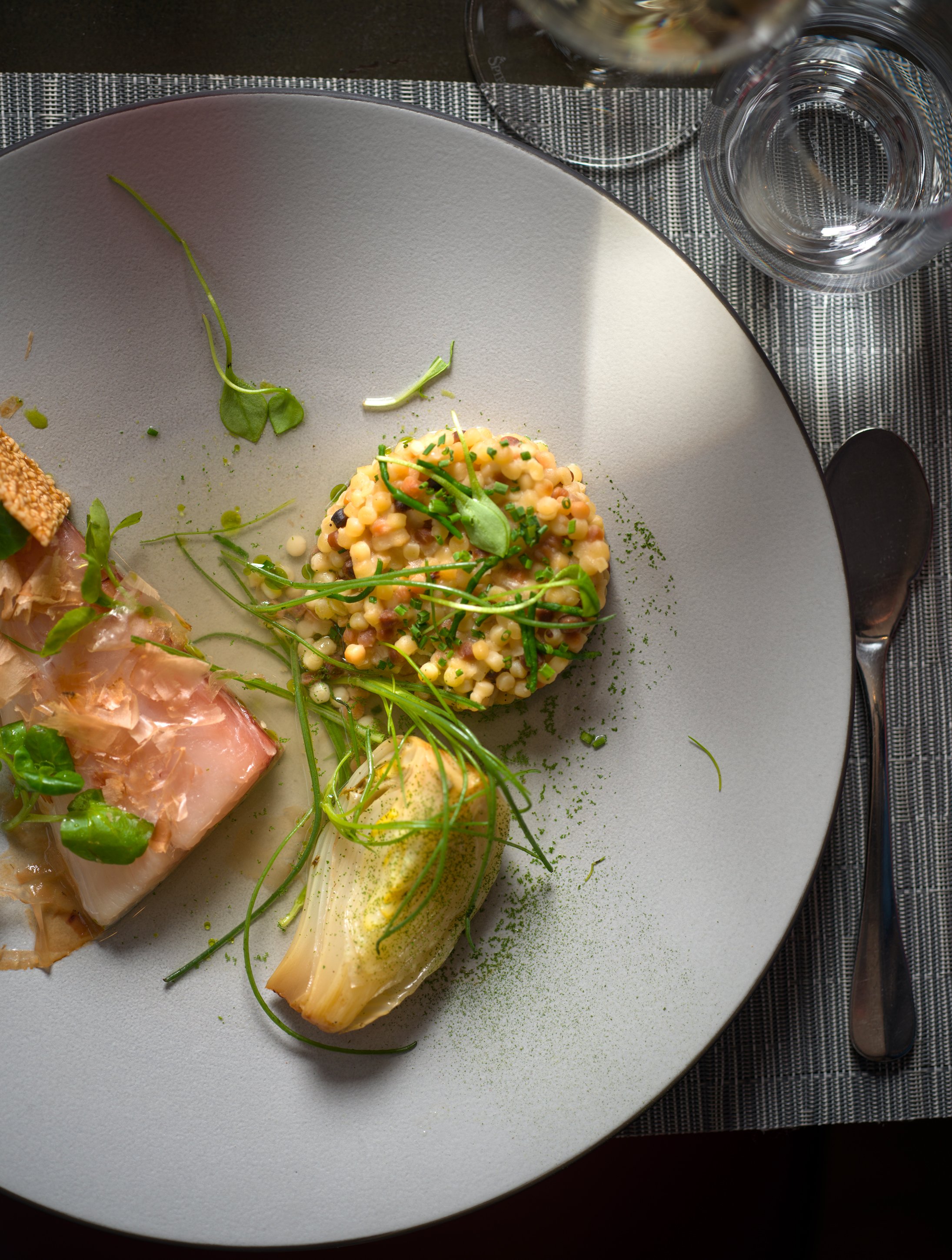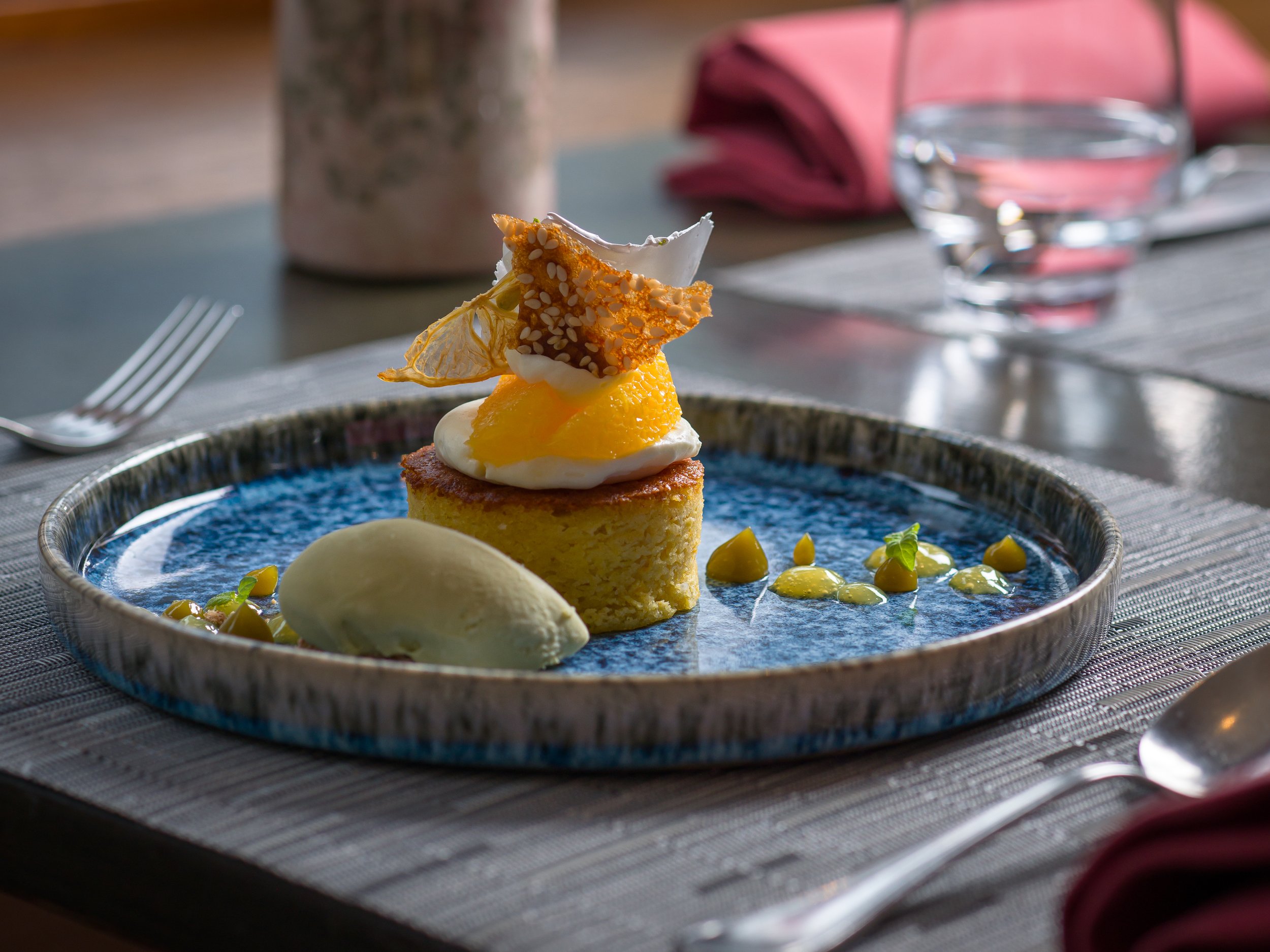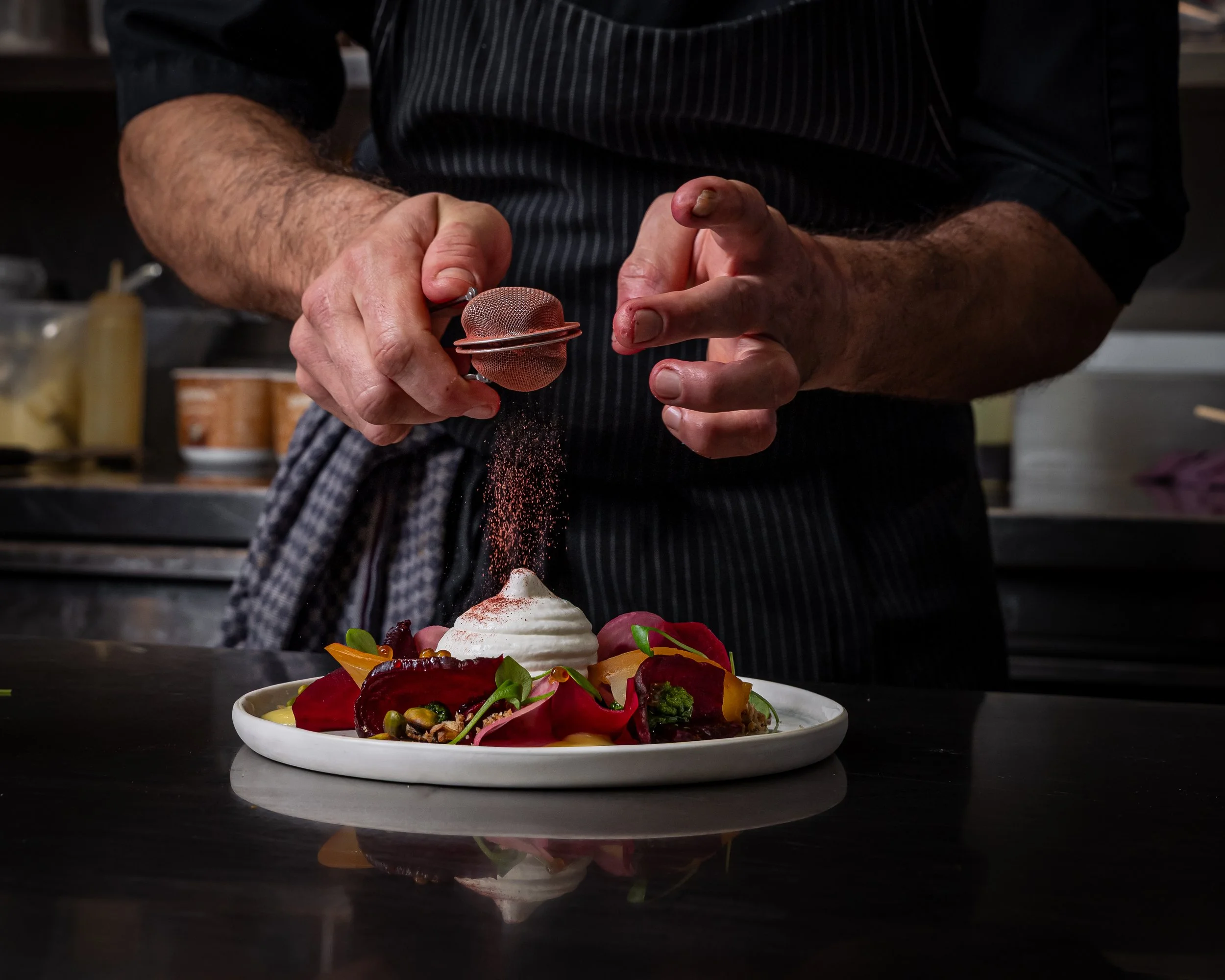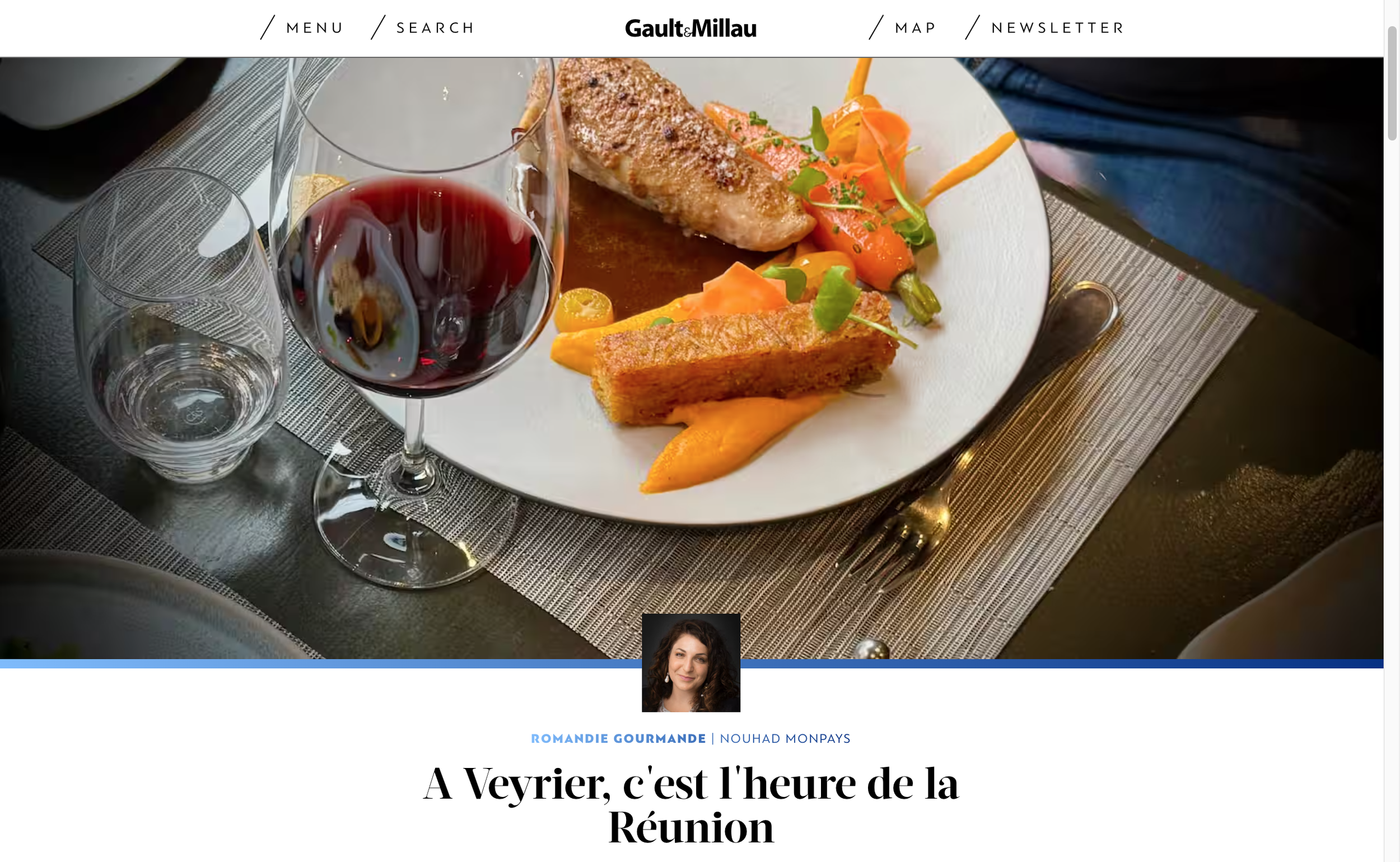 En cuisine, Jeremy Frizot imagine au fil des saisons une cuisine gastronomique moderne, ancrée dans le terroir genevois et les produits de Veyrier. Entouré de sa brigade, il compose des menus pensés comme des voyages, où technique, créativité et respect du produit se rencontrent.